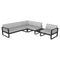 - Compuesto por un Módulo izquierdo BELLEVIE 1 plaza, una Tabla de unión rectangular BELLEVIE, un Módulo central BELLEVIE 1 plaza, un Módulo esquina BELLEVIE y un Módulo derecho BELLEVIE 2 plazas