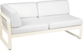 Módulo izquierdo esquina BELLEVIE 2 plazas para el EXTERIOR de la marca francesa FERMOB®. La estructura está hecha de aluminio con dos capas de pintura para exterior de alta calidad muy resistente a la vez que ligero. Los cojines son para el exterior TTE y poliuretano resistente a la deformación diseñados para que disfrute de una animada conversación o una reconfortante siesta en el salón o jardín de su hogar. Forman parte de la colección modular BELLEVIE con la que puede diseñar su sofá ideal.