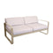 Sofá 3 plazas BELLEVIE para el EXTERIOR de la marca francesa FERMOB®. La estructura está hecha de aluminio con dos capas de pintura para exterior de alta calidad muy resistente. Los cojines, fabricados en el nuevo tejido Pearl con tacto extra suave y la trama más gruesa y elaborada. Son para el exterior TTE y poliuretano resistente a la deformación, a las manchas, al moho, al desgarro y a la abrasión. Disfrute de una animada conversación o una comida en el salón o jardín de su hogar.
