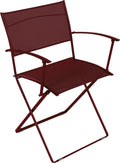 Silla con reposabrazos PLEIN AIR plegable de acero galvanizado para EXTERIOR de la marca francesa FERMOB®. Está hecha de acero con dos capas de pintura anticorrosión para exterior de alta calidad. Silla muy cómoda, plegable, confortable y ligera que puede moverla donde quiera en su terraza o el interior de la casa. Su base en forma de U asegura una estabilidad infalible. El asiento y el respaldo también son de tejido antidesgarro, resistente a las manchas, al moho y a la deformación. En este modelo se aporta una comodidad extra gracias al Textilene TTE Batyline® : ISO/DUO o STEREO.