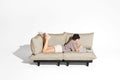 Sofá pequeño PALETTI Royal para el EXTERIOR de la marca holandesa FATBOY®. Está hecho de tejido Olefin® grueso con un sutil brillo bicolor para exterior de alta calidad. Sofá para ser combinado con toda la colección Paletti Royal. El relleno está fabricado con materiales reciclados que aportan la más alta calidad. No se preocupe por el agua, los rayos UV o manchas y simplemente relájese en este cómodo sillón. Esta versión Royal proporciona un sensación de lujo adicional. Decida qué elementos necesita y cree su propio conjunto perfecto para el salón o terraza.