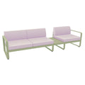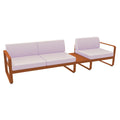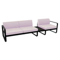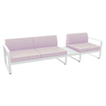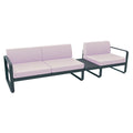 Composición 1B BELLEVIE para el EXTERIOR de la marca francesa FERMOB®. La estructura está hecha de aluminio con dos capas de pintura para exterior de alta calidad muy resistente. Los cojines Pearl, con trama mas gruesa y tacto mas agradable, son para el exterior TTE y poliuretano resistente a la deformación diseñados para que disfrute de las celebraciones familiares en su jardín o comedor. Desenfundables, los cojines con tejido Pearl de este sofá de jardín son sorprendentemente fáciles de mantener y muy resistentes, la tela para exteriores 100 % acrílica teñida en solución resiste las manchas, el moho, los desgarros y la abrasión. Compuesto por un módulo derecho de 1 plaza, unido a una tableta de unión y un módulo izquierdo de 2 plazas, invita a pasar momentos al aire libre, sin complicaciones. Sus suaves curvas traducen la dolce vita: en este elegante sofá, cómodamente sentado, con un montón de revistas colocadas a tu lado y una lámpara para prolongar tu lectura al caer la noche.