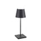Lámpara POLDINA MINI para el EXTERIOR de la marca italiana ZAFFERANO® de 30cm de altura. Está hecha de aluminio para exterior de alta calidad, resistente a los golpes. Iluminación LED, recargable con USB, dos tonos de colores blancos fríos y dos calientes. Un control táctil en la parte superior del cabezal permite encenderla, regular la intensidad luminosa y seleccionar la temperatura de color de la luz. 12 Horas de autonomía y dos intensidades de luz.