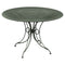 Mesa 1900 de Ø96cm em aço galvanizado para EXTERIOR da marca francesa FERMOB ®. A estrutura é feita de aço com duas camadas de tinta anticorrosiva externa de alta qualidade . O topo é perfurado com anéis e o pedestal com pergaminhos é forjado à mão. Acomode até cinco hóspedes e adicione elegância e romance ao seu jardim.
