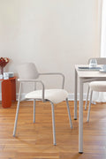Cadeira STUDIE feita de tecido e alumínio para uso INTERIOR da marca francesa FERMOB®. A estrutura é feita de alumínio com duas camadas de tinta de alta qualidade e muito resistente. O encosto e o assento são feitos de tecido estofado com espuma e revestidos com tecido 100% reciclado. Inspirado nas cadeiras escolares, ele vai te levar de volta à sua infância. Uma cadeira de uma só peça que é muito confortável graças à curvatura do assento e do encosto, idealmente projetados para acompanhar o formato do corpo. Combine-os com qualquer mesa FERMOB®, seja na sua cozinha, quarto ou sala de estar.